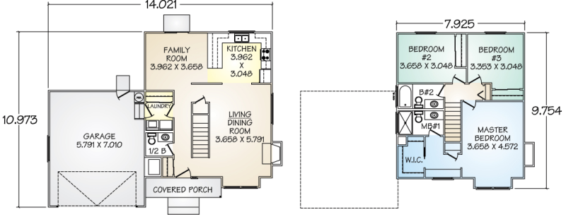 The Westlake panelized kit home is a livable two-story plan featuring an inside laundry and a guest bath on the first floor. Not only is this a practical plan, it is also easy to build and makes efficient use of space. The formal dining room can easily be used as a family room since the large living room has ample space for dining next to the kitchen.